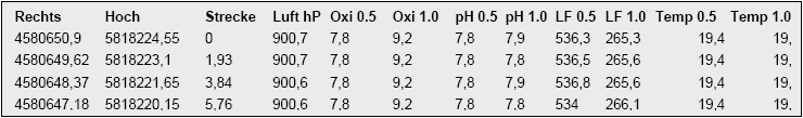 - In der Weiterverarbeitung der Gewässergütedaten kann jederzeit eine Auswertung in Bezug zur Position, zur Wassertiefe, zur Aufnahmezeit, usw. erfolgen